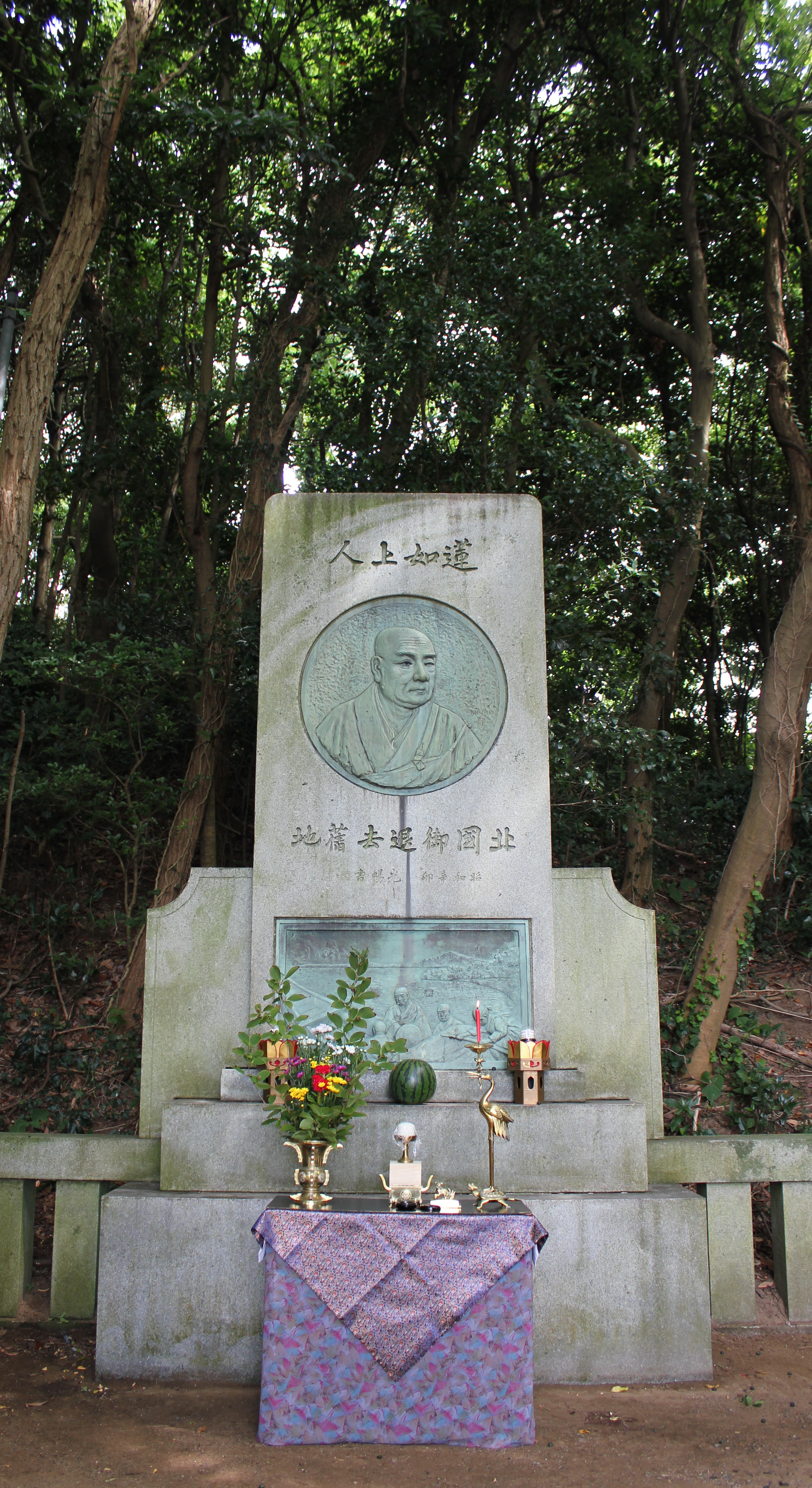 この地は、1475(文明7)年に蓮如上人が吉崎から退去される時に、最後に立たれた地として大切にされ、1951(昭和26)年より毎年8月3日に法要が勤修されています。