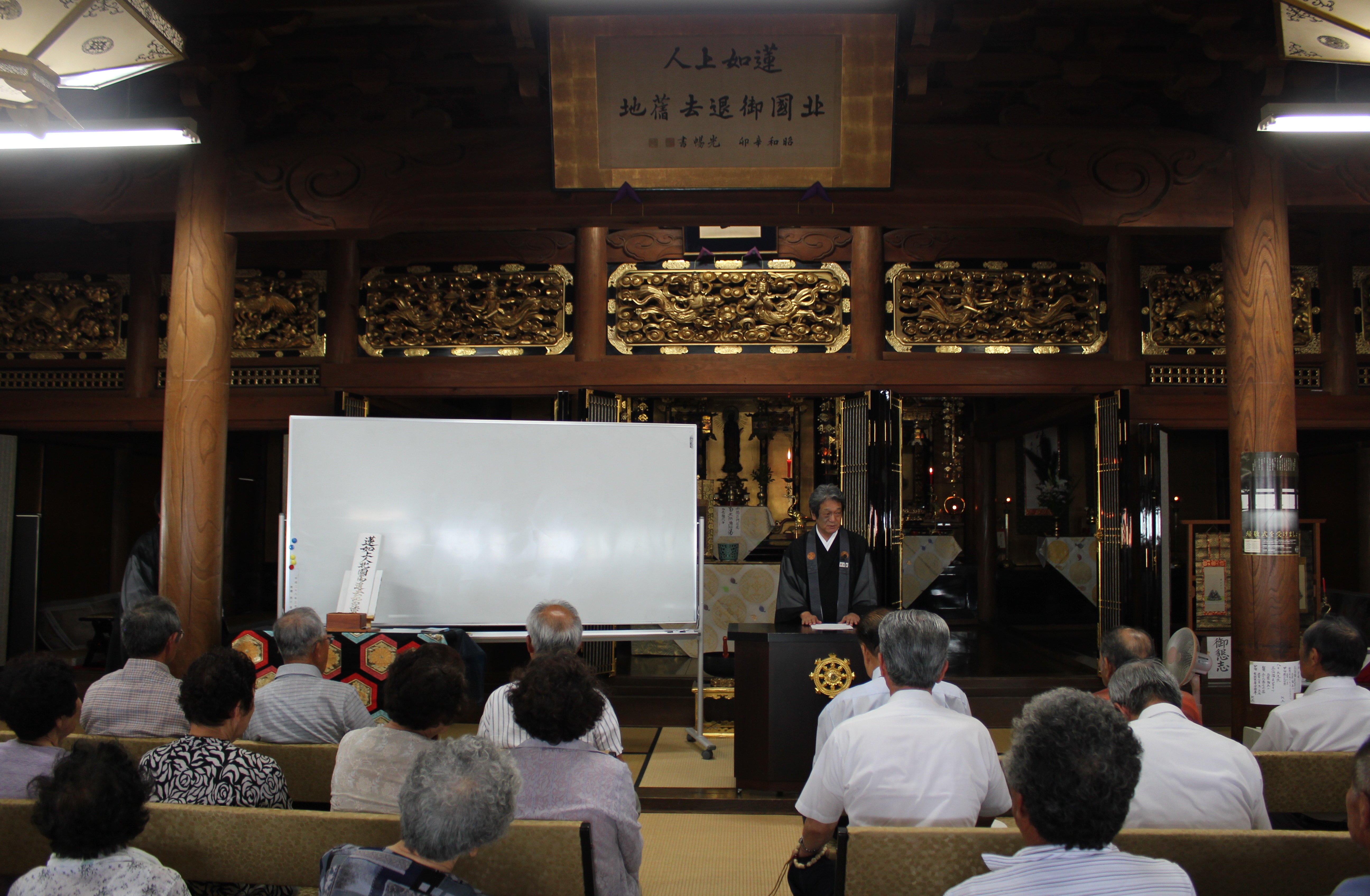 北陸の地で念仏をひろめられた蓮如上人であるが、5年間の教化を終えてこの地を去る時、どのような思いだったのか。そのお気持ちに思いを馳せる法要であります。夏の厳しい日差しが照りつけるなか、今年は49名のお参りがありました。