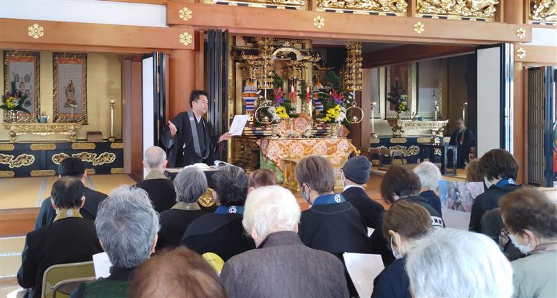 勤行の後、髙山崇土佐別院輪番は、「四国教区として最後の法要が、四国唯一の別院であり地域にとって大切な場の一つでもあるこの土佐別院で勤まったことは、これまで100年にわたって継承されてきた本願念仏の教えを後世に手渡していく節目になることだろう」と挨拶し、法要を締められました。