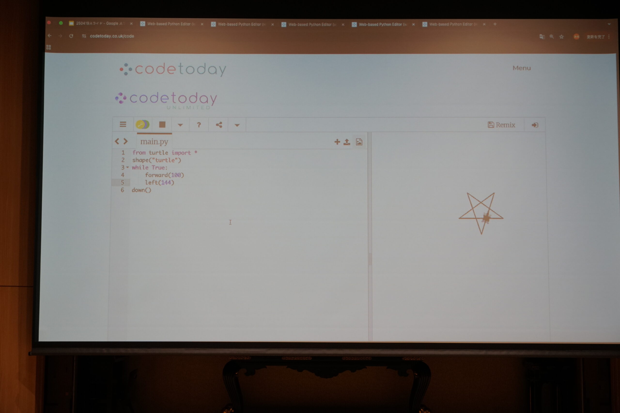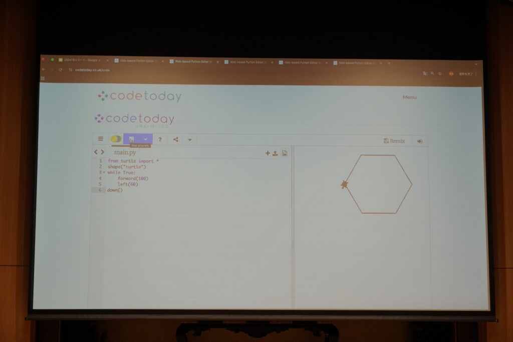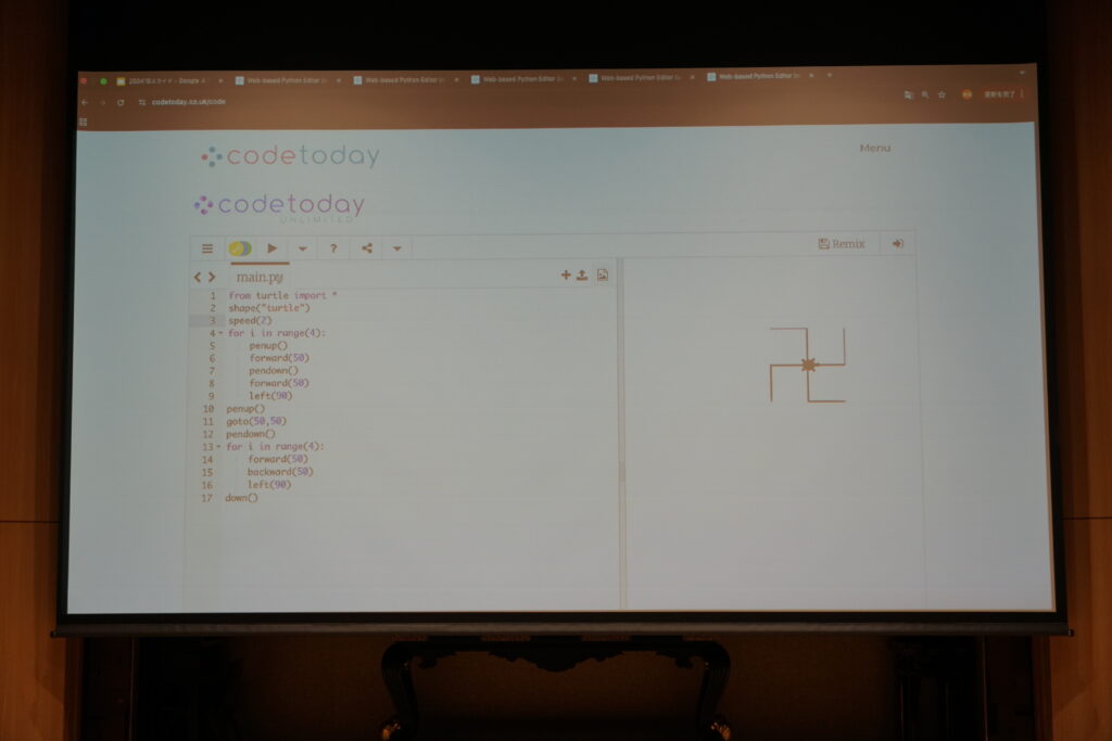 今回、「codetoday」というオンラインエディタを用いてプログラミング言語である「Python(パイソン)」を体験しましたが、Pythonは絵を描くだけではなく様々なことに応用できます。