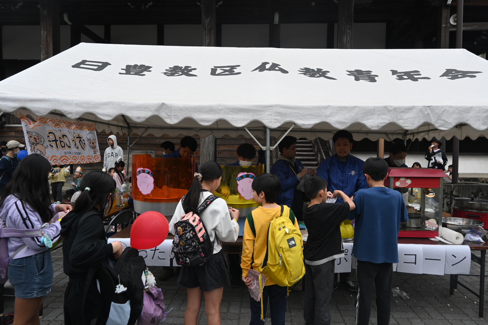 仏教青年会会長の小栗栖大地さんは、「昨年まではスタッフ不足に加えて、この規模でこれからも続けられるのかという心配がありました。今年は商店街の方に出店の募集を担っていただいたおかげで、各ブースに目が行き届きやすくなりました」と昨年から改善された点を教えてくれました。
