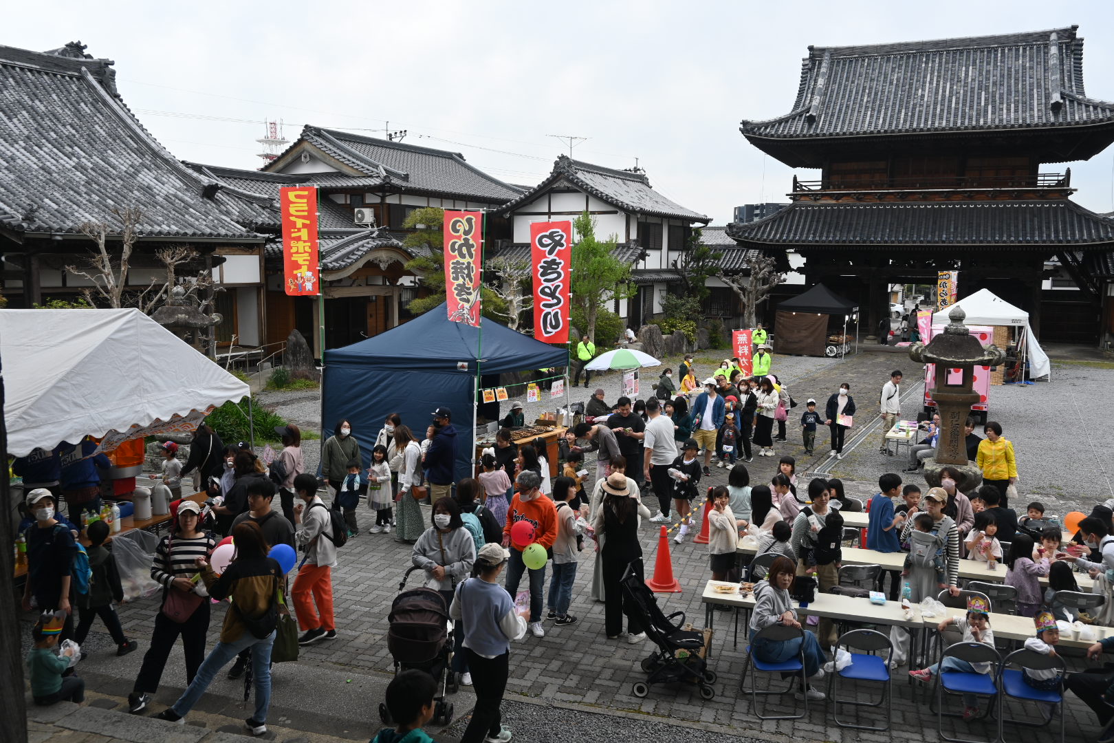 2025年4月12日、大分県宇佐市にある東本願寺四日市別院(東別院)と本願寺四日市別院(西別院)を会場に、「四日市別院はなまつり」が開催されました。両別院は道を挟んで隣同士という立地ながら、今まではひとつの催しを一緒に企画するという機会はありませんでした。旧日豊教区仏教青年会の主催で長年続けられてきた「はなまつり」。宗派の慶讃事業として取り組まれてきた「四日市別院活性化プロジェクト」の一環で、昨年から両別院・仏教青年会・四日市商店街振興組合が協力し合う形で開かれています。