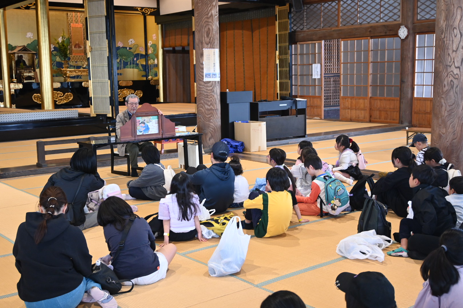 昨年までは、本堂で行うワークショップや人気のキッチンカーのお店などには仏教青年会が直接呼びかけて企画をしていました。はなまつり実行委員会委員長の渡辺浩晃さんにお話を聞くと、「はなまつりをきっかけに別院に来てもらう」ことには繋がったものの、キッチンカー目当ての来場者も多かったのでなかなか本堂まで上がっていただけず、本来の目的であるお釈迦さまの誕生を祝うはなまつりを知ってもらうことには課題が残っていたそうです。「今回は、軸足をよりお寺に向けようと話し合いました。キッチンカーも魅力的ですが、テーマと違うねという声も多くあって。子どもたちを中心に置いた行事なので、これからも安心して遊びに来られる場所を作っていきたいです」と語られました。
