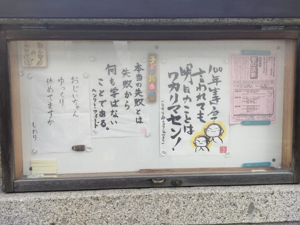 みんなの言葉コーナーでは言いたいこと、伝えたいこと、好きなこと、なんでも載せてよく、お寺の掲示が1ヶ月ごとなのに対し月に2回変えることもあるほど多くの言葉が寄せられています。10年ほど続いた今、友達の言葉が載っている、知っている言葉がある、子どもが書いた言葉があった、などで、わざわざ遠くから見に来てくれる人たちもいるほどです。