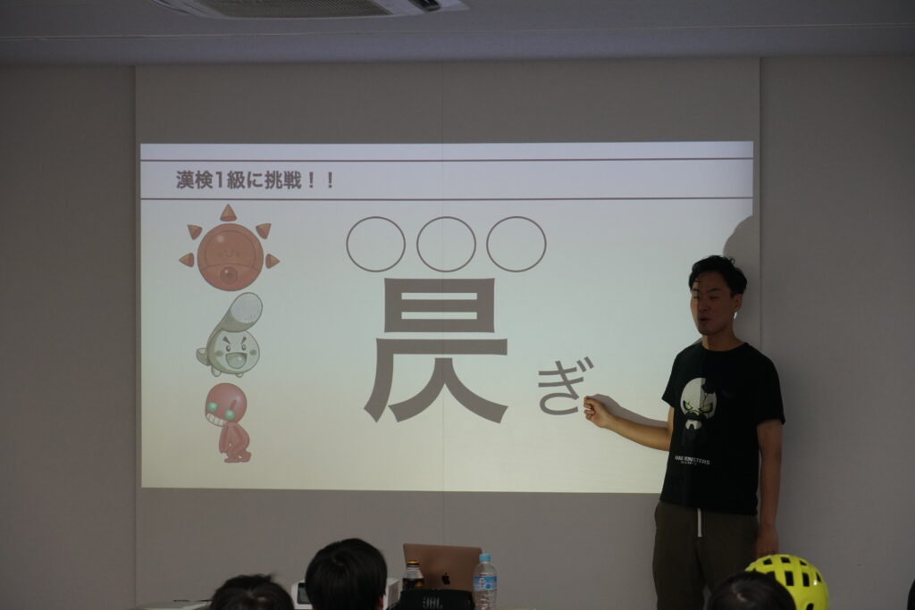 また、説明の最後には日本漢字能力検定1級に出るような問題に挑戦したりしました。