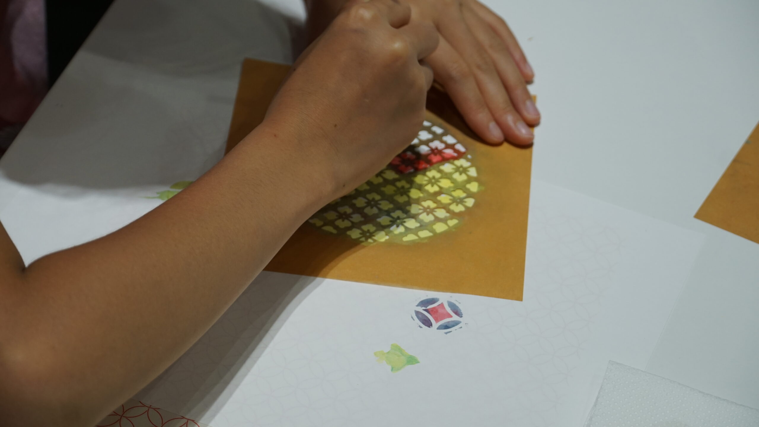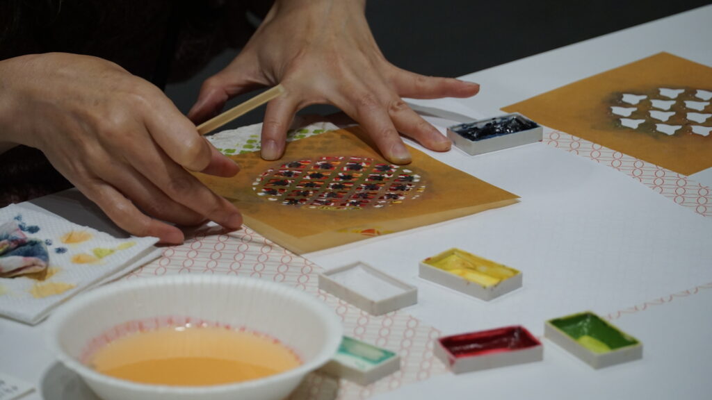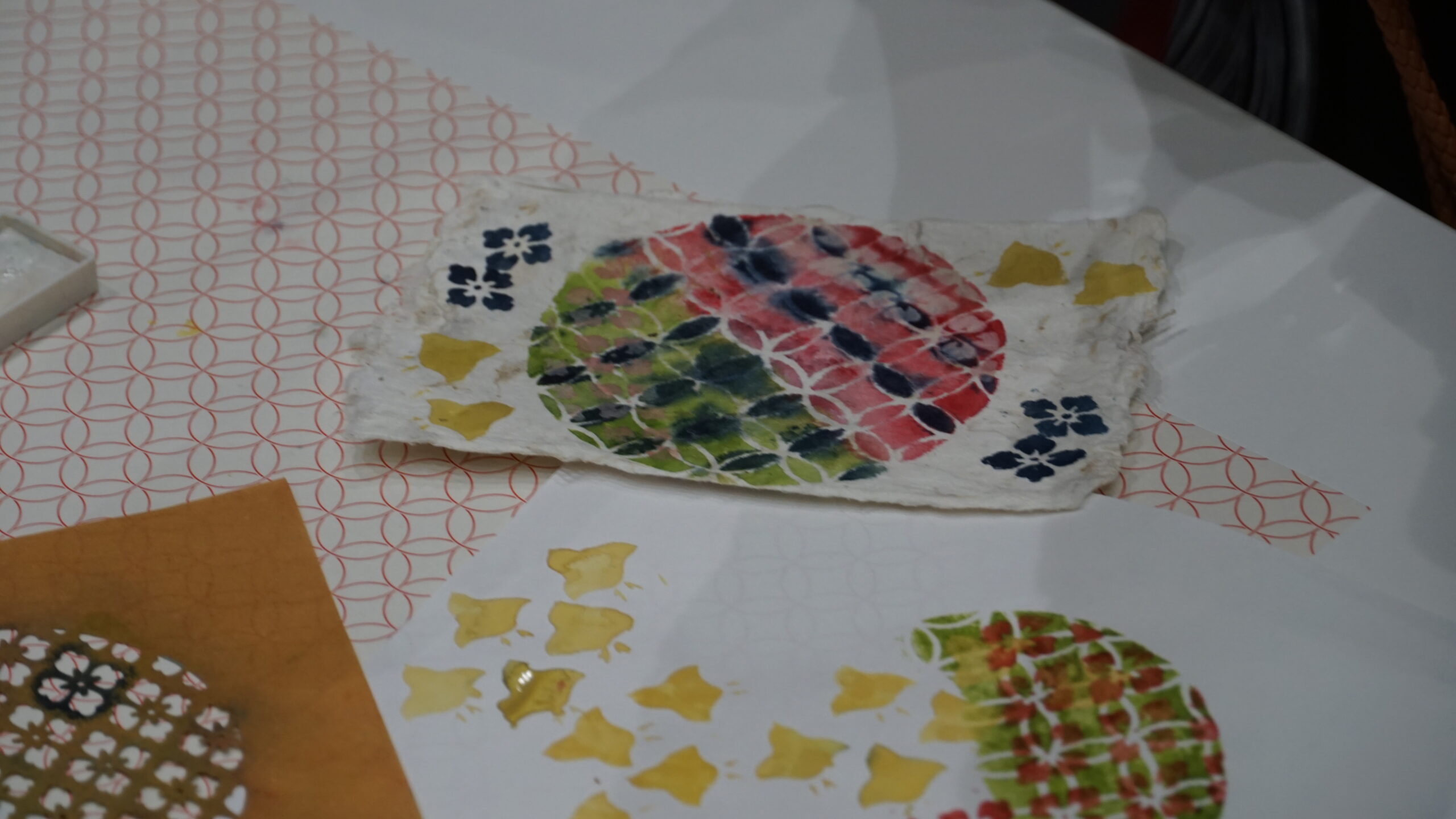 皆さんの制作風景をカメラで撮っていましたが、一人一人様々な色の使い方や模様の組み合わせ方をされていて非常に興味深かったです!