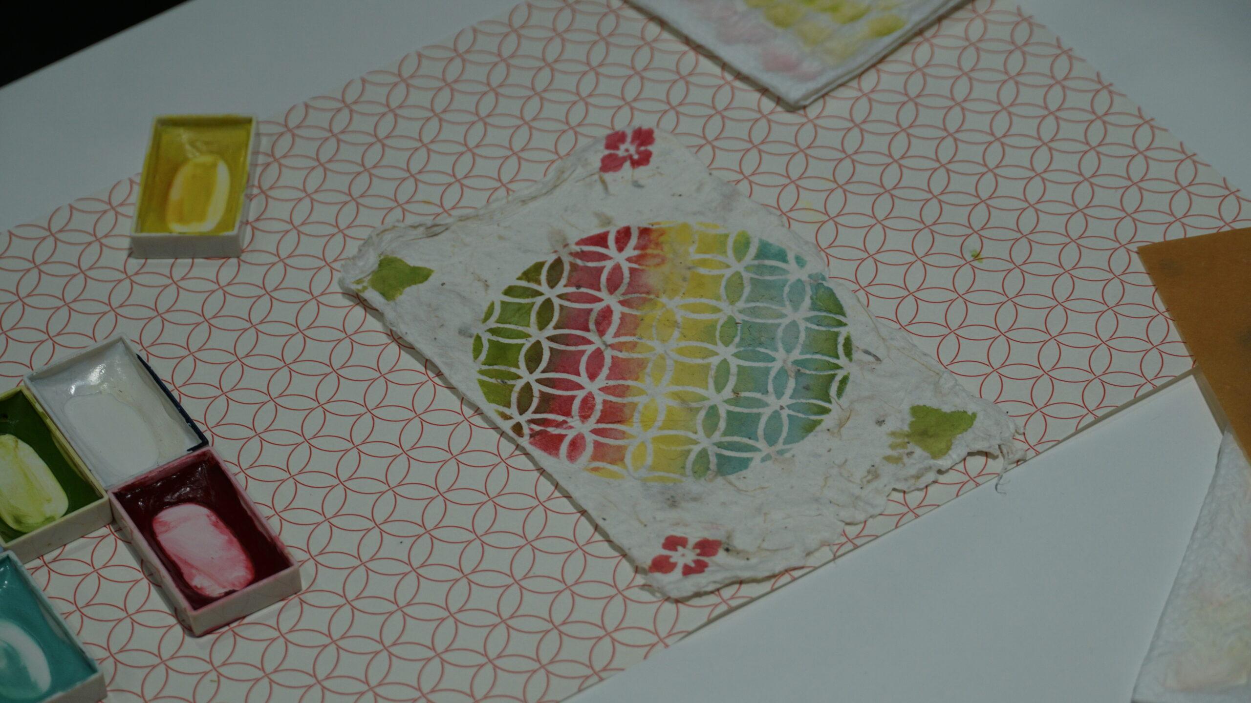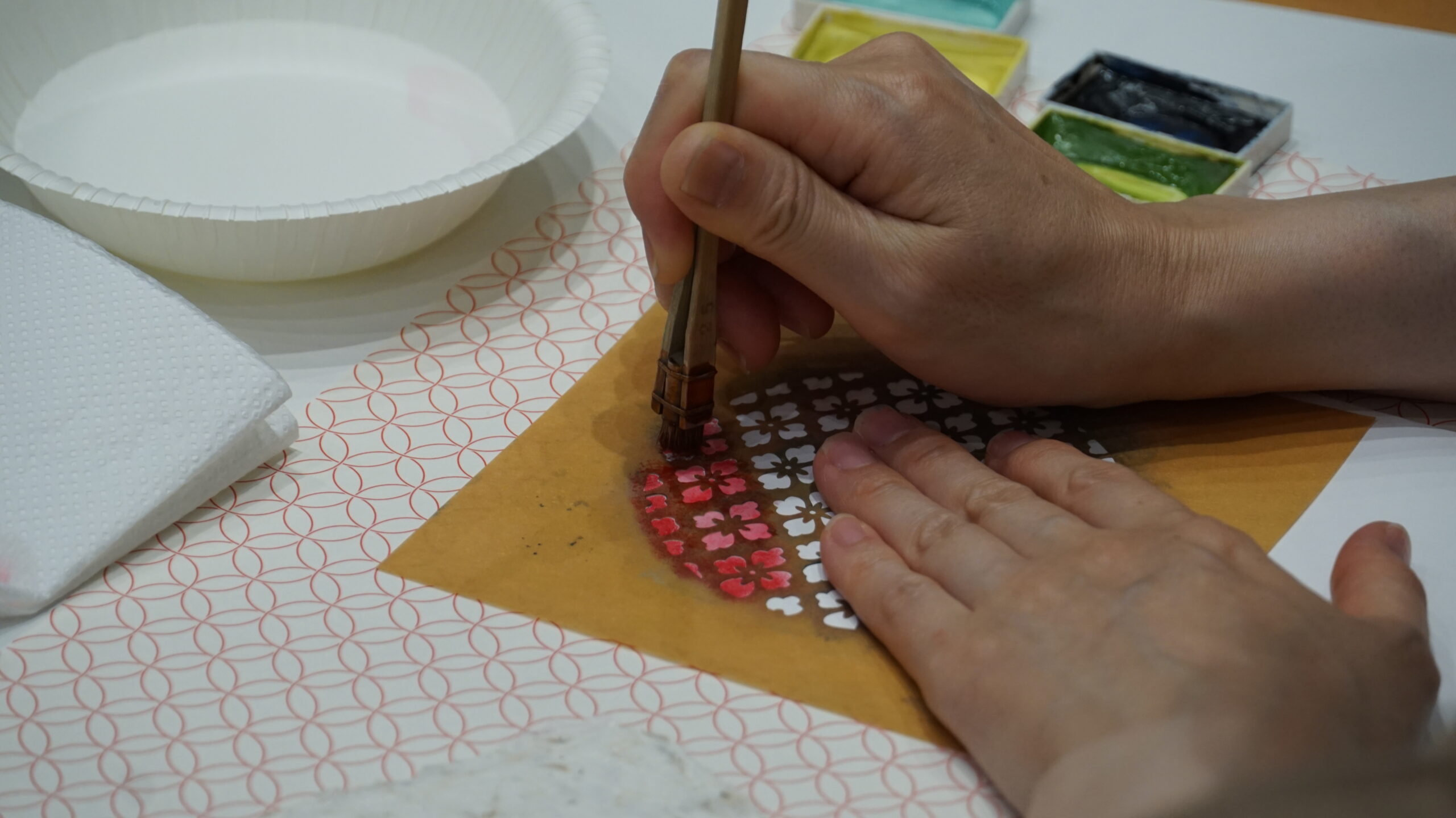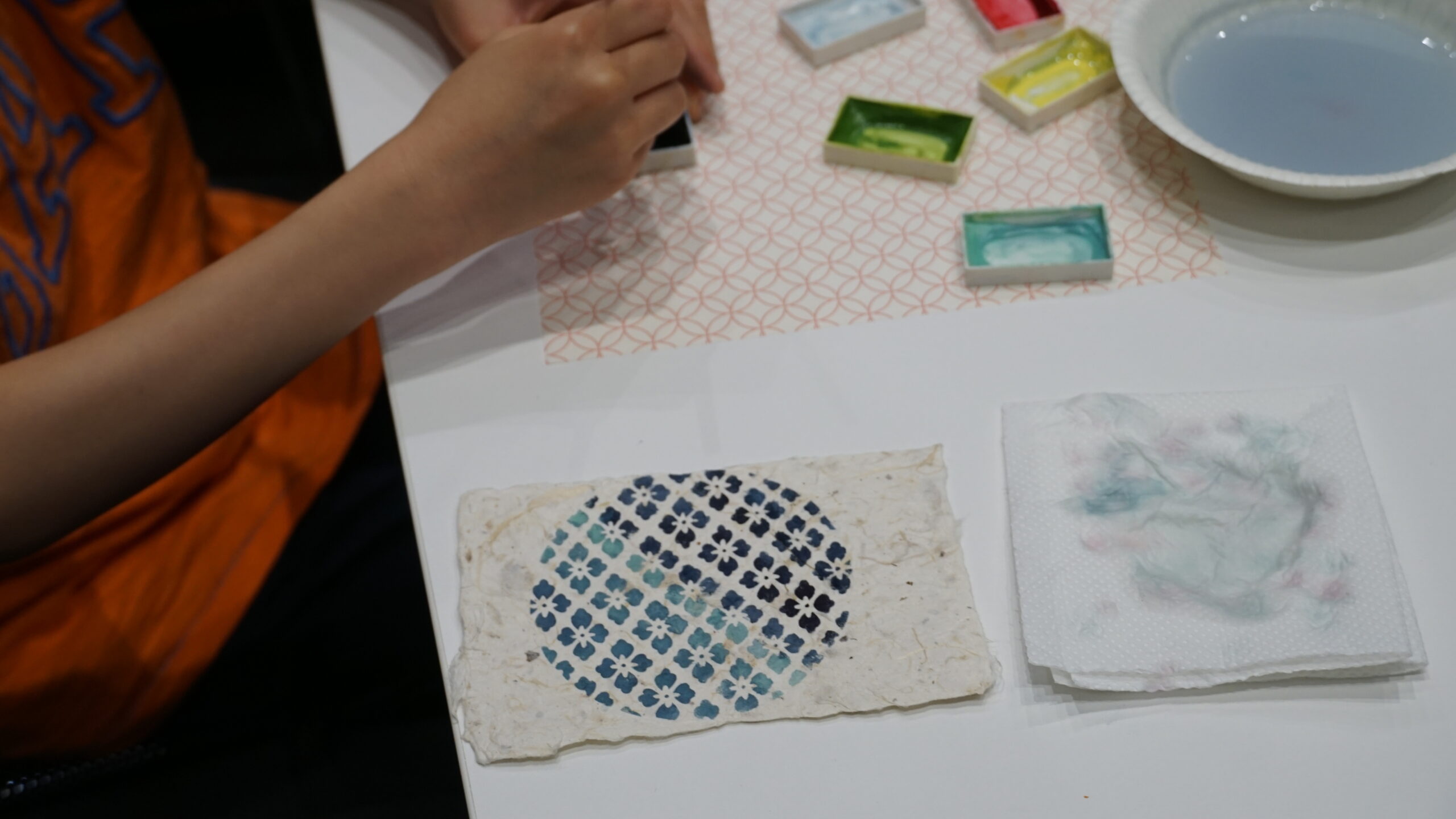皆さんの制作風景をカメラで撮っていましたが、一人一人様々な色の使い方や模様の組み合わせ方をされていて非常に興味深かったです!