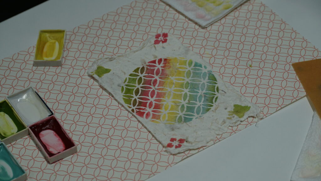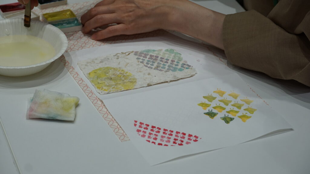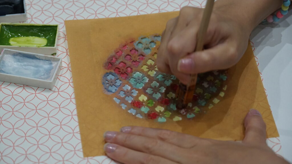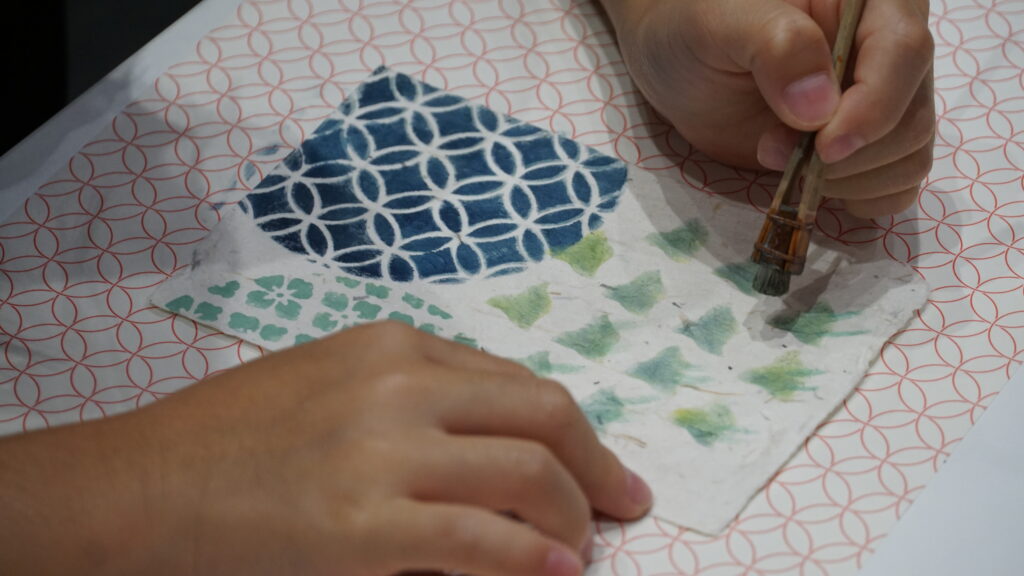 各自で様々なデザインや色をつかってオリジナル和紙はがきを完成させていきます!