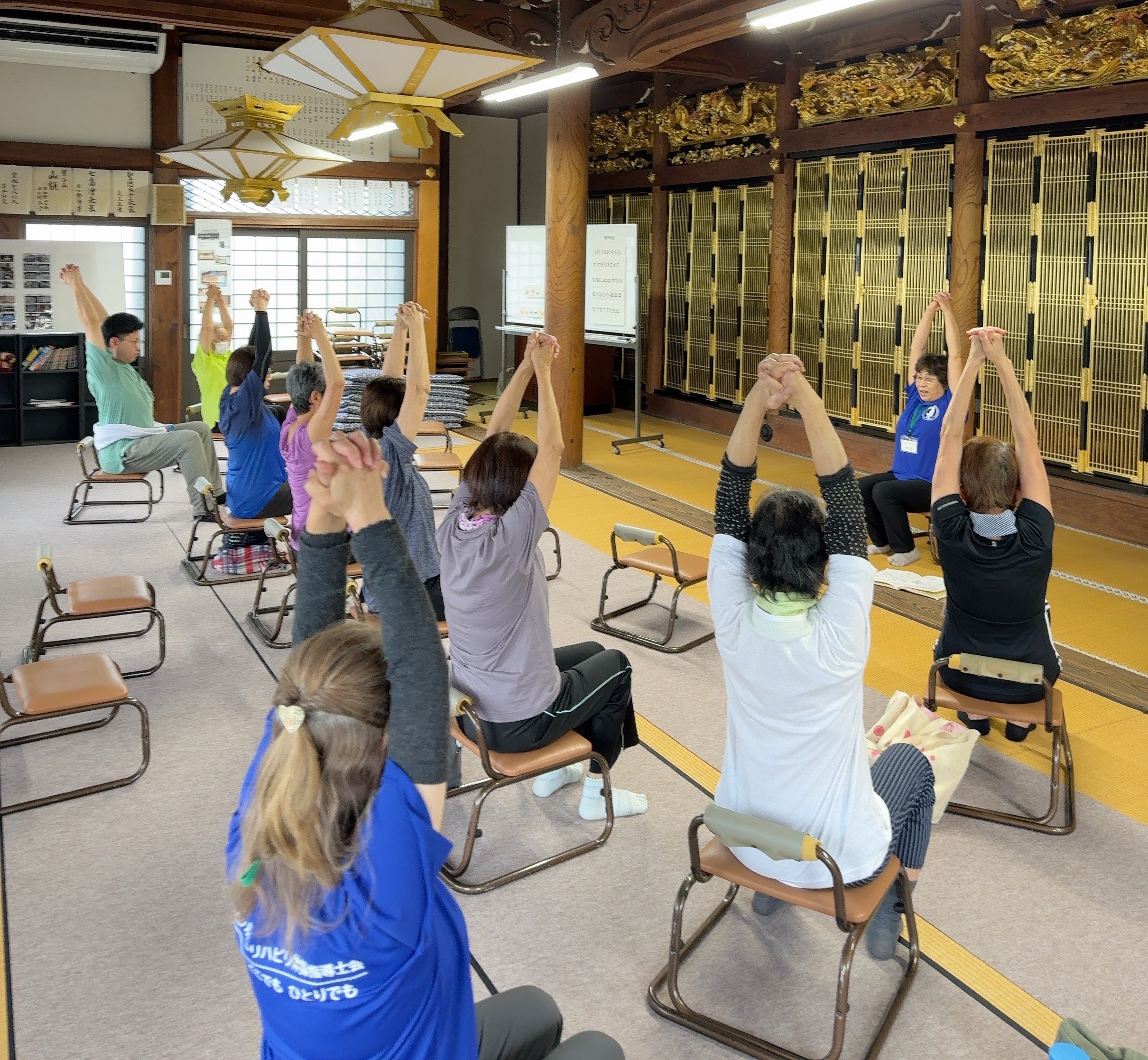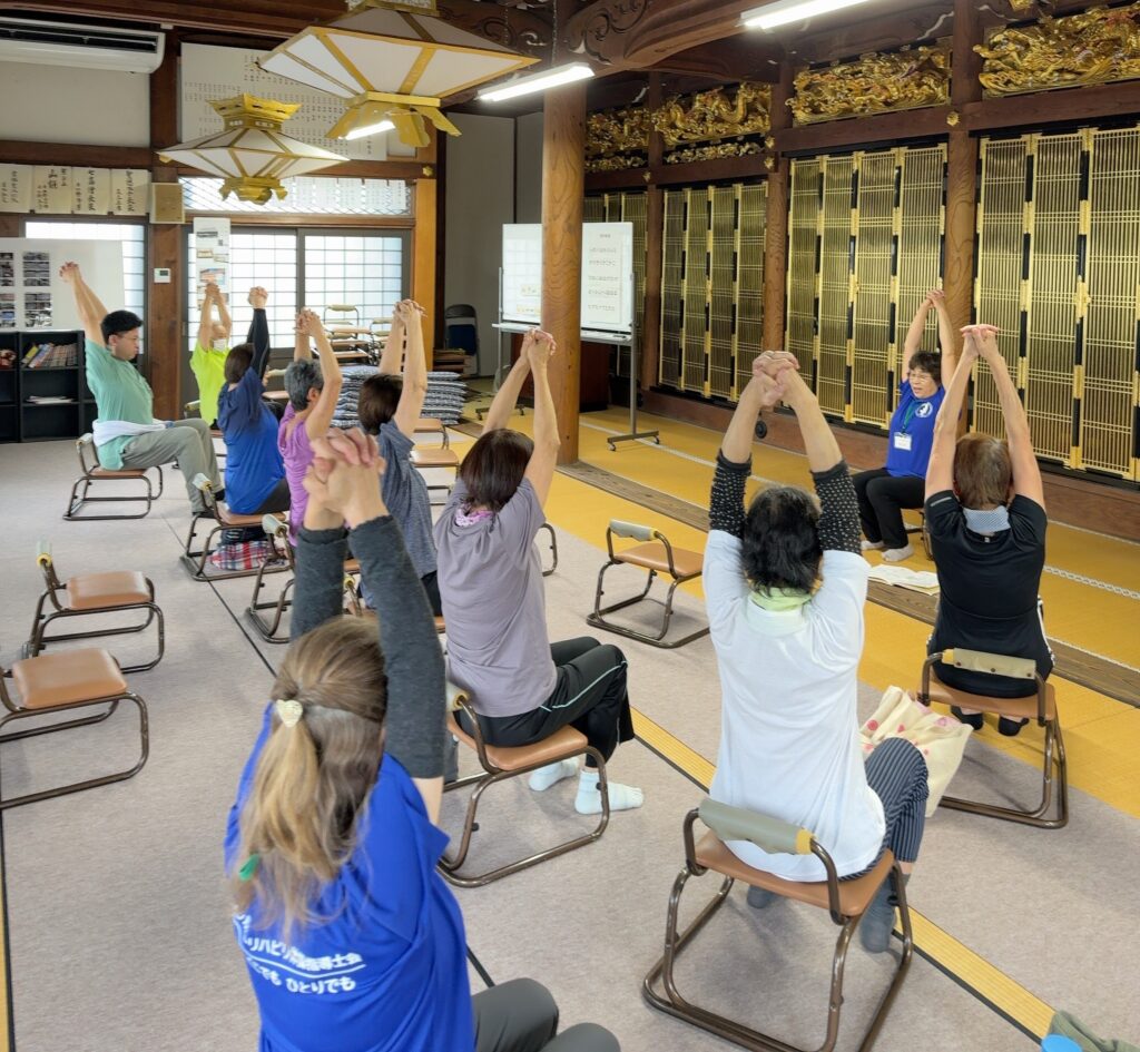 淨源寺では、約三年前より、高齢者を対象とした「シルバーリハビリ体操教室」が始まりました。きっかけは、坊守の裕子さんが義両親の健康を気遣い、体操指導の資格を取得されたことでした。その際の講師から「地域の方々にも活動の輪を広げてほしい」という思いを託され、門徒に限らず、地域の高齢者も参加できる教室が開かれるようになったのです。