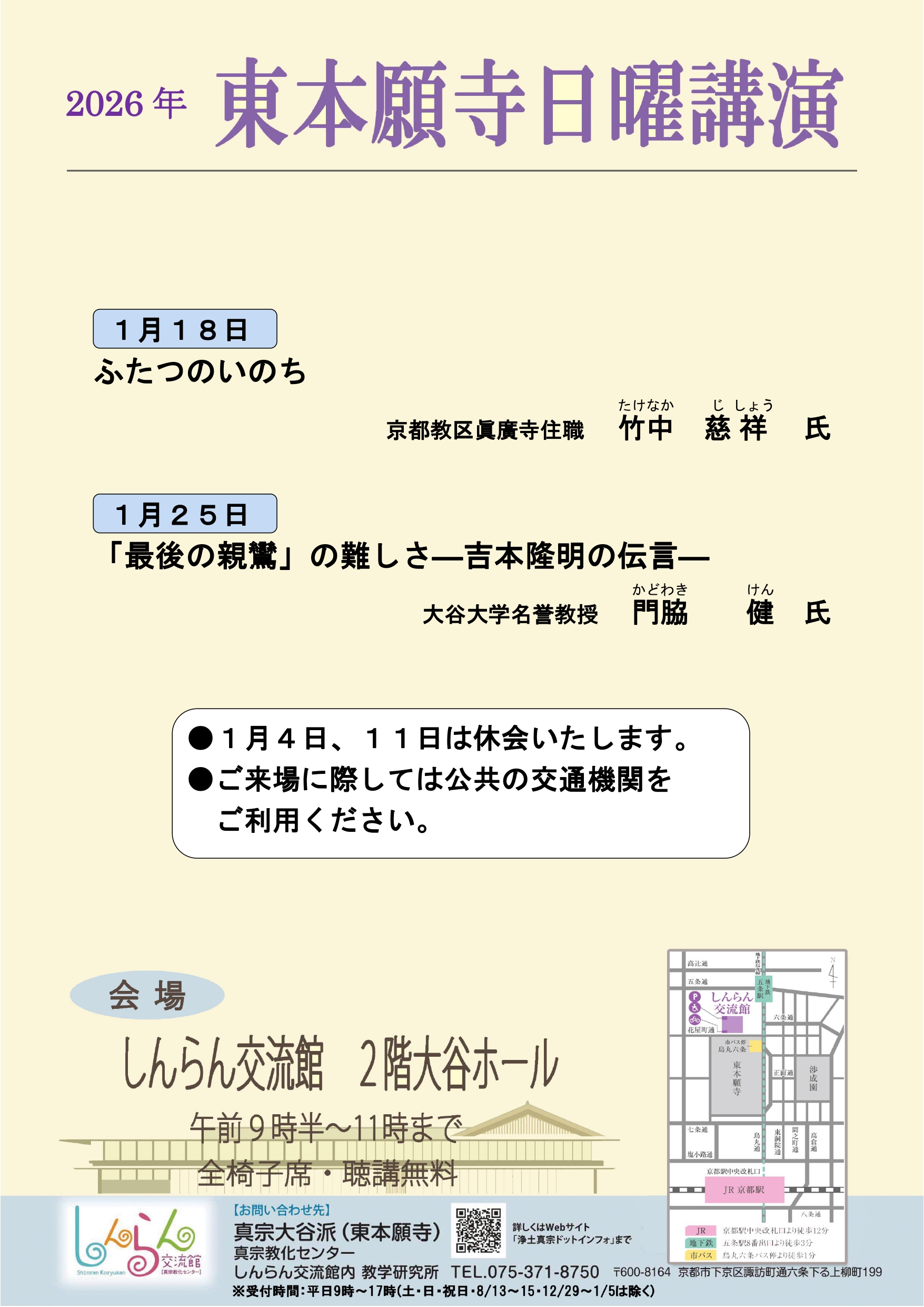 | 2月15日 | 東京教区專福寺住職 | 二階堂 行壽 氏 | 浄土真宗の仏事 ー言葉にであい、人は生まれるー |