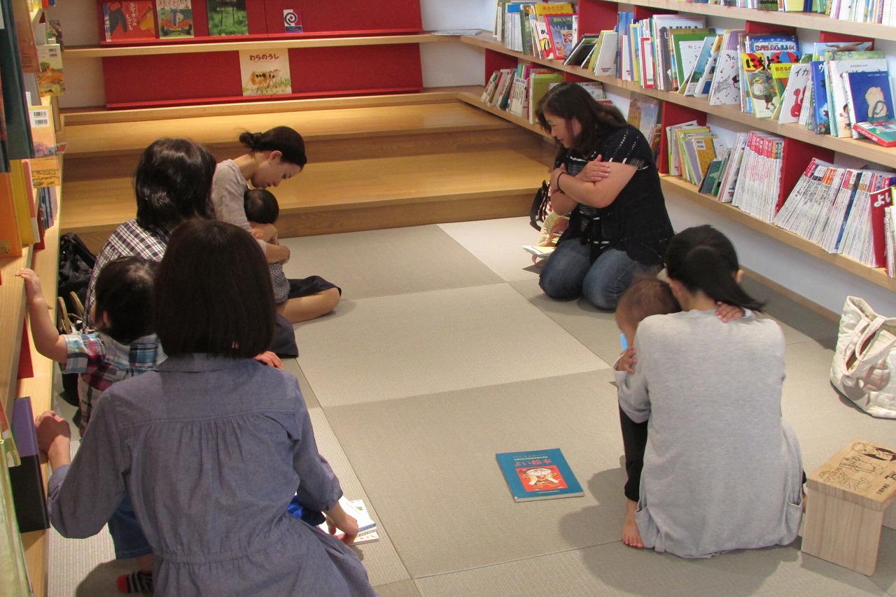 その後、お母さん同士、岡田さんを交えながら、子育てのことなど、絵本コーナーでおしゃべりする姿がありました。