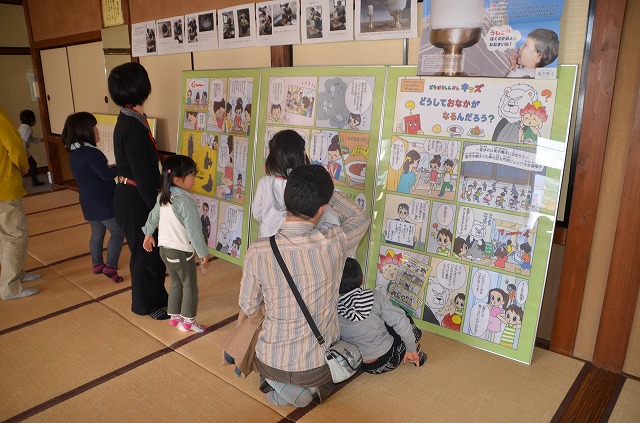 つどいの最後には、人形劇「『いただきます』ってなぁに?」が東海連区児童教化連盟有志によって演じられました。劇には東本願寺キャラクターとお仏供をモチーフにした岐阜教区御遠忌キャラクターのブクちゃんが登場し、お仏供になる前のお米ができる過程をたどりながら、他の命を奪わずにはおれない私たち人間存在を問いかけるオリジナルの脚本で上演しました。
