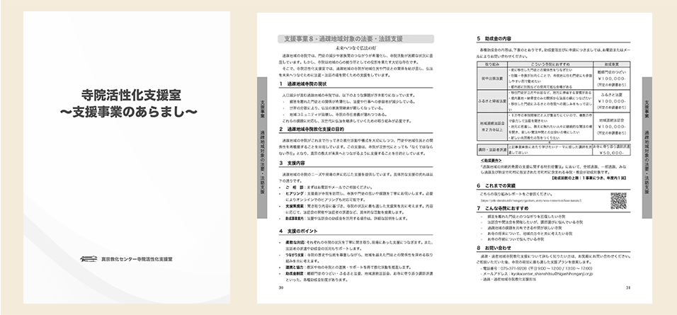 本サイトの内容をカタログ的に概観できるよう小冊子化した『寺院活性化支援室~支援事業のあらまし~』を作成しました。